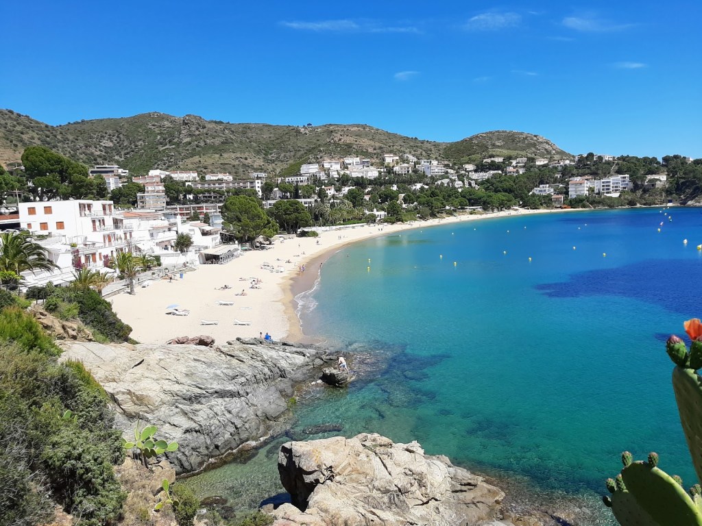 Het strand van Canyelles Petites ligt feitelijk voor de deur. Je moet nog wel even de berg af (en daarna weer op). Een steile klim van 1,6 kilometer. Je kunt ook met de auto. Die parkeer je voor 5,- per dag op de parkeerplaats naast de supermarkt.